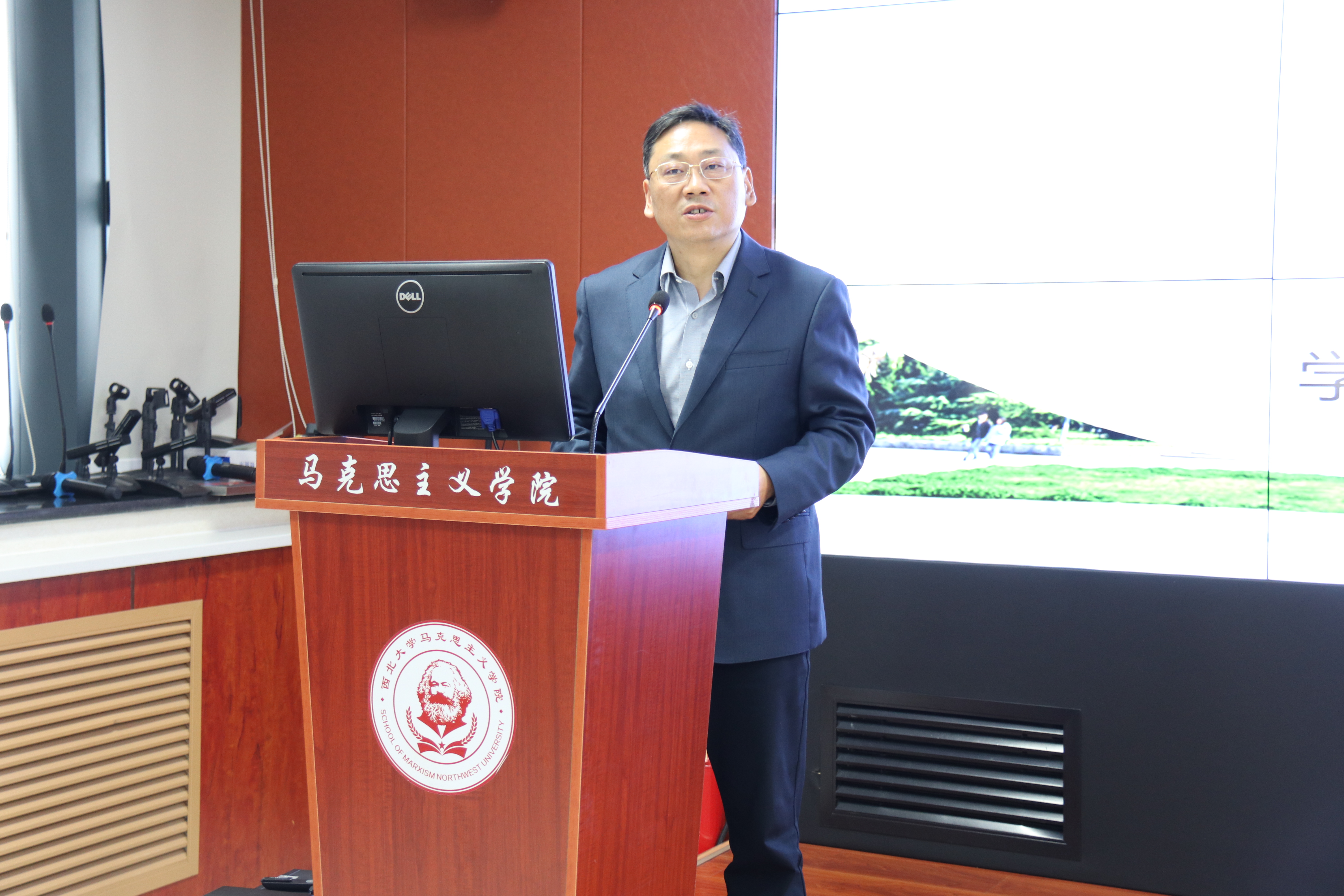 我院形势与政策课教研部主任曹建军作了《关于本学期课程建设的几点说明》的报告,对本学期形势与政策课8个专题进行了讲解,强调目标定位、内容定位、功能定位。他谈到,我校形势与政策课教研团队坚持将教学占领主阵地、理论研究求品质、团队教研工作更加契合作为工作特色,以质量提升为导向,教研成果逐步集成。