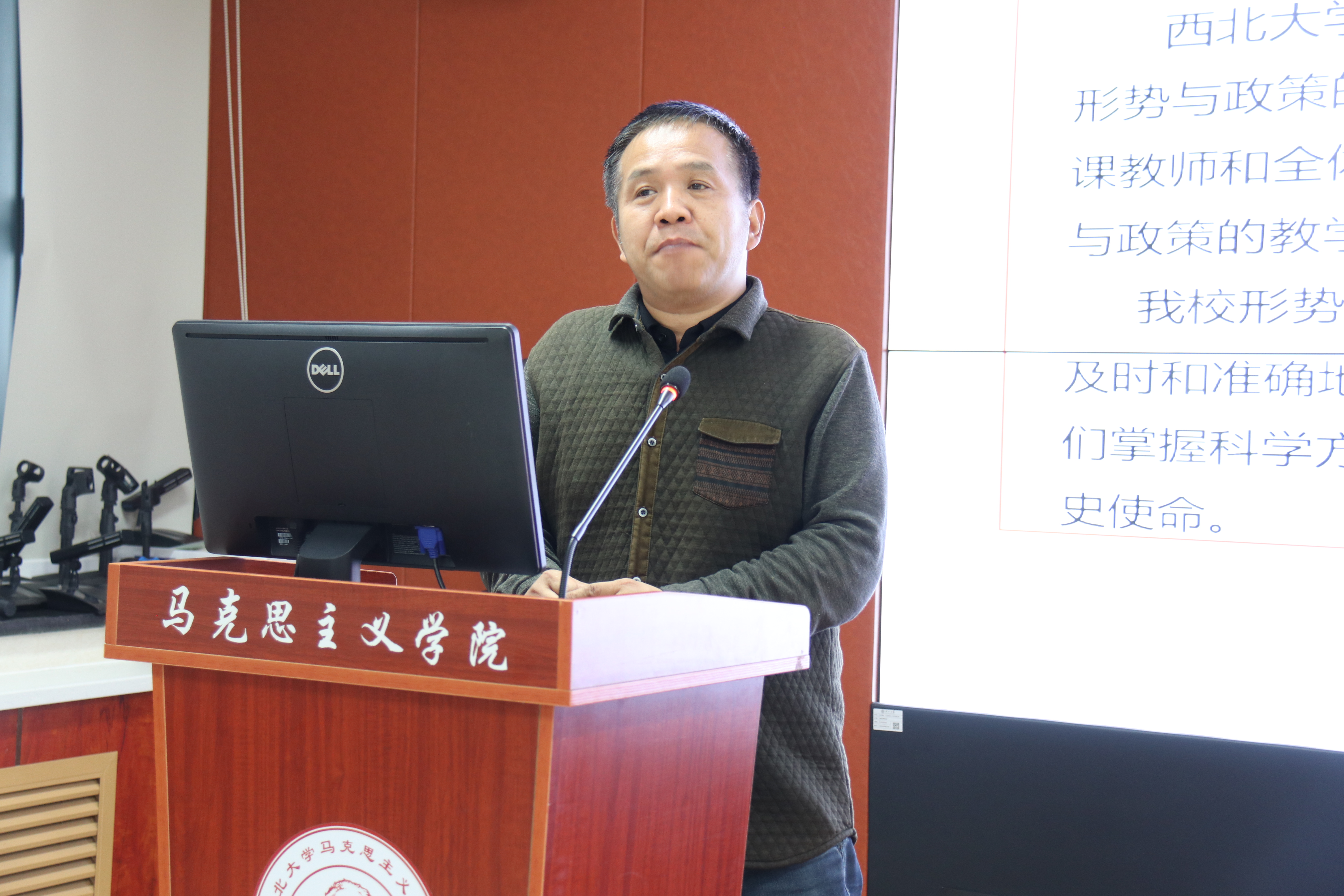 地质系党委副书记、陕西高校思政“大练兵”展示活动“教学能手”李政伦作获奖经验交流发言。他以《虚心使人进步,心虚使人更进步——“形势政策课”教学经验交流》为题,首先从多元化的观点和正义等方面,介绍了自己对形势政策课的认识,并从工作实际和形势与政策课融合、上好形势与政策课的基础、感想和建议等不同方面,作了经验心得分享。