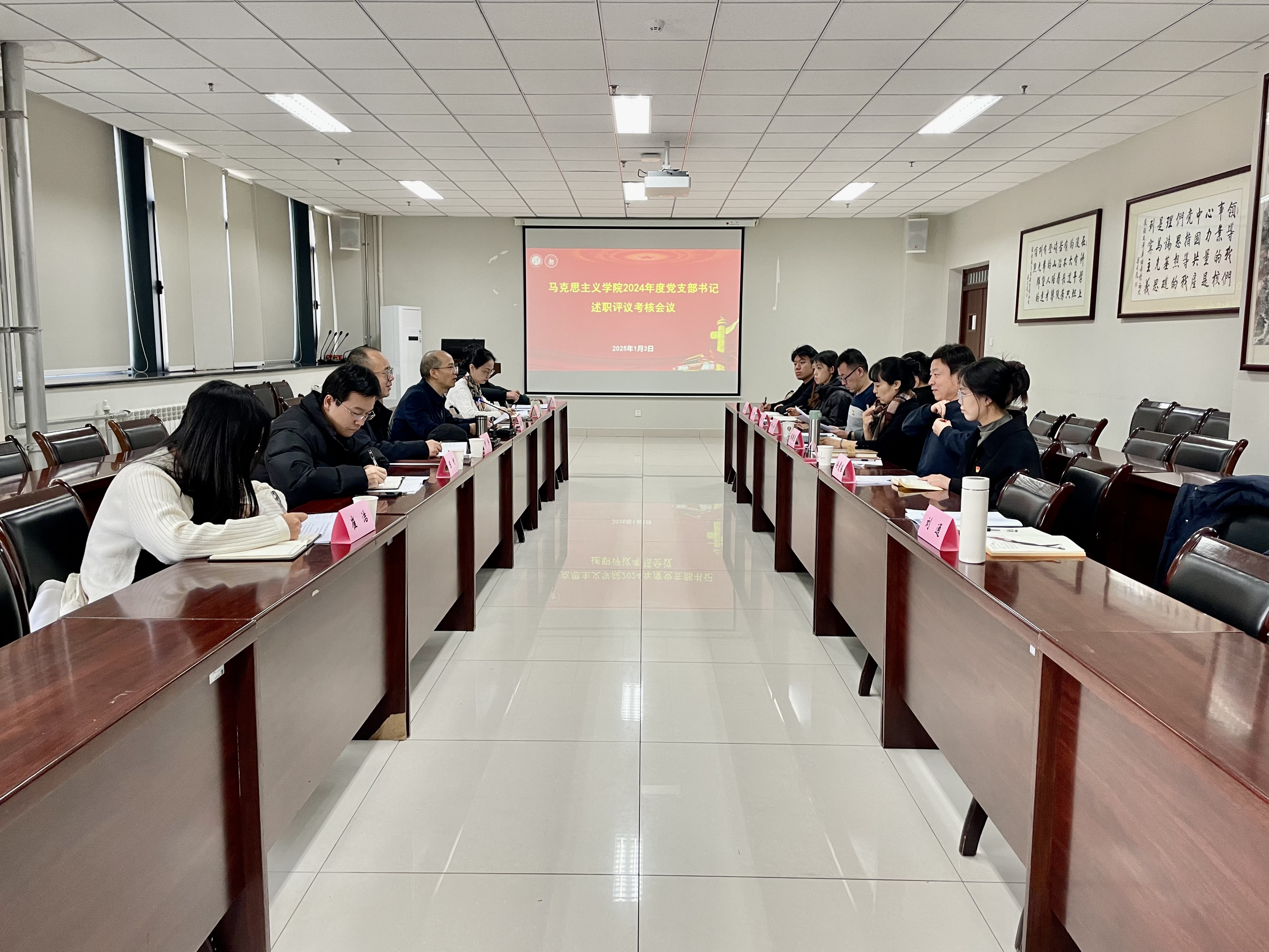 1月3日下午,我院召开2024年度党支部书记述职评议考核会议。第二巡察组干部、文学院党委副书记陈柯、数学学院党委组织员崔洁列席指导,院长、院党委副书记何博、院党委副书记邵平,各党支部书记与党务工作人员参加。会议由院党委书记韩凯峰主持。