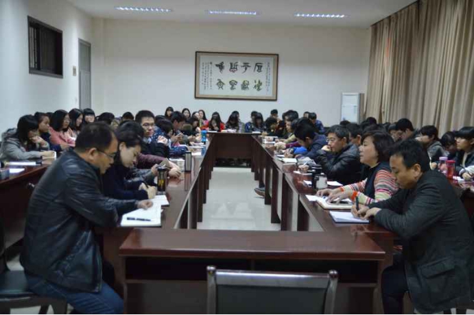 会议伊始,院党委副书记李波老师发表了讲话。简短的新年问候后,李老师总结通报了去年学院学生作的各项优秀成绩。她指出,我院应继续发挥特色优势,不断努力,将我们这一支优秀团队所具有的良好品质继续发扬下去。她强调,学院学生干部要不断提高自己的综合素质,自身要硬,在思想政治方面和学业方面发挥榜样作用。李老师还表示,我院将继续为大家搭建平台,提高学生的综合能力,实现“小院系,大精彩”的目标共同奋斗。最后李老师表达了对各位班主任及老师和学生干部的感谢之情