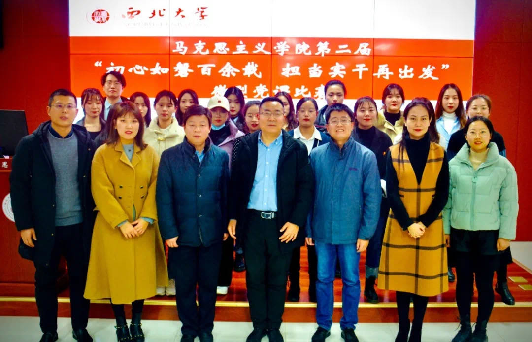 为深入贯彻习近平新时代中国特色社会主义思想,积极学习党史、新中国史、改革开放史、社会主义发展史,激励当代青年在“四史”学习中“读懂中国”,坚定政治信仰,汲取奋发前行的磅礴力量,马克思主义学院于12月8日晚举办第二届“初心如磐百余载 担当实干再出发”微党课比赛。马克思主义学院党委书记刘杰、西北大学党委组织部副部长杨红涛、马克思主义学院党委副书记邵平、学院王有红副教授,齐钊副教授及青年讲师宋晓丹、院辅导员刘娟出席并担任比赛评委。