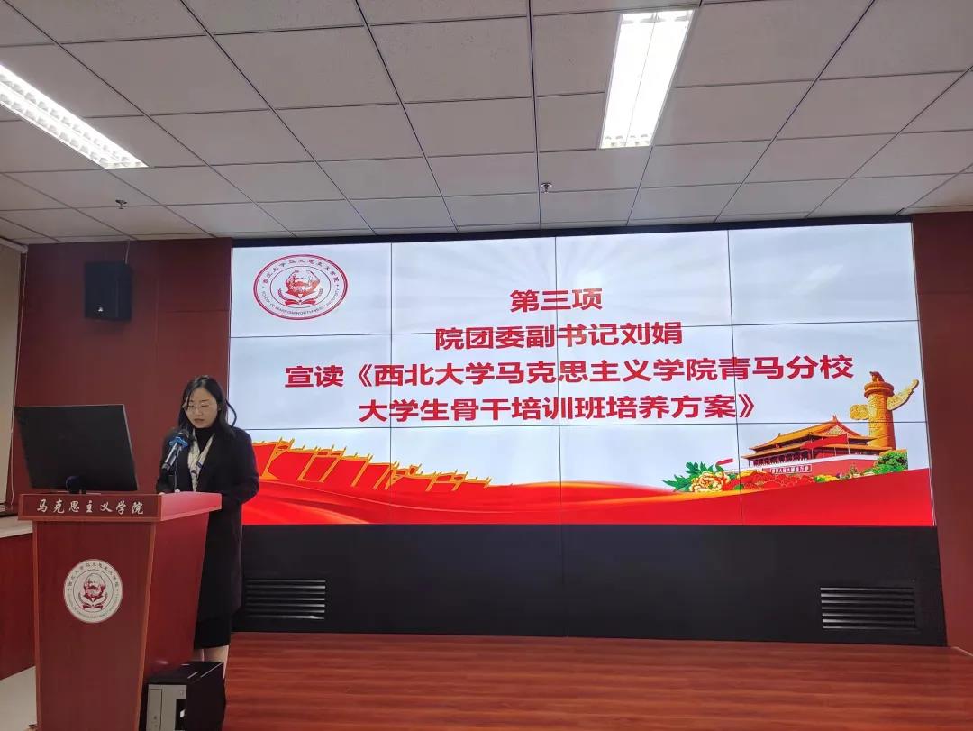 随后,院团委副书记刘娟宣读了《必赢242net官网青年马克思主义者培养工程第一期大学生骨干培训班培养方案》,对此次“青马班”的培养目的、培养方案和考核途径等予以明确。她希望我院全体青马学员在培训过程中珍惜学习机会、转变思想认识,模范遵守校规校纪,时时处处事事以身作则,带头讲政治、勤学习,牢固树立爱校、尊师、守纪的理念,努力成长为素质高、能力强、肯干事、能成事的青年马克思主义者。