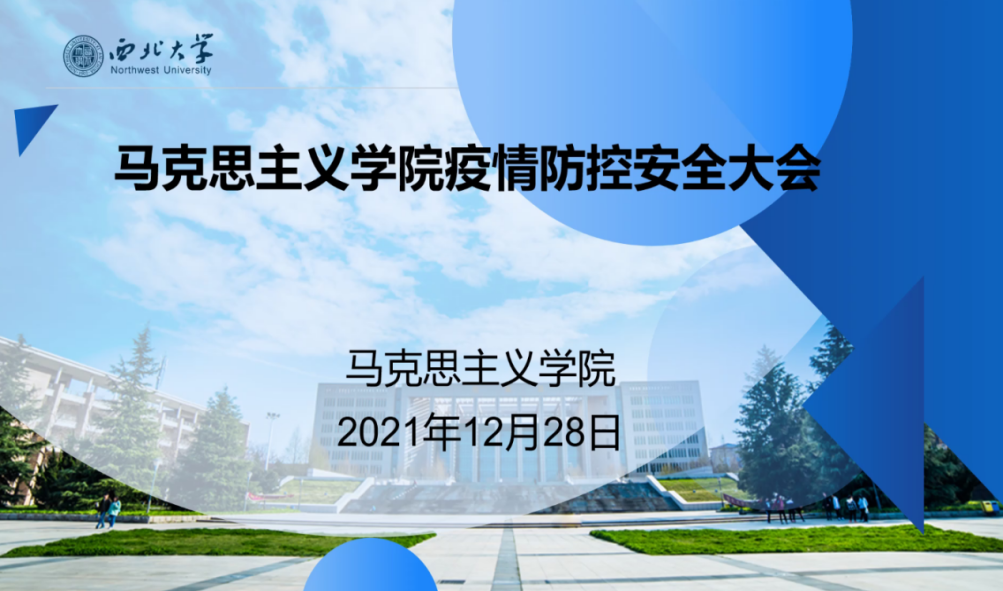 近期西安市疫情形势愈发严峻,为进一步抓严抓实学院疫情防控工作,切实保障全院师生生命安全和身体健康,并对下一步的防疫抗疫工作进行安排部署,马克思主义学院于12月28日上午11:00召开了学生疫情防控安全线上大会。学院党委副书记邵平、辅导员刘娟以及学院全体学生参加了本次会议。