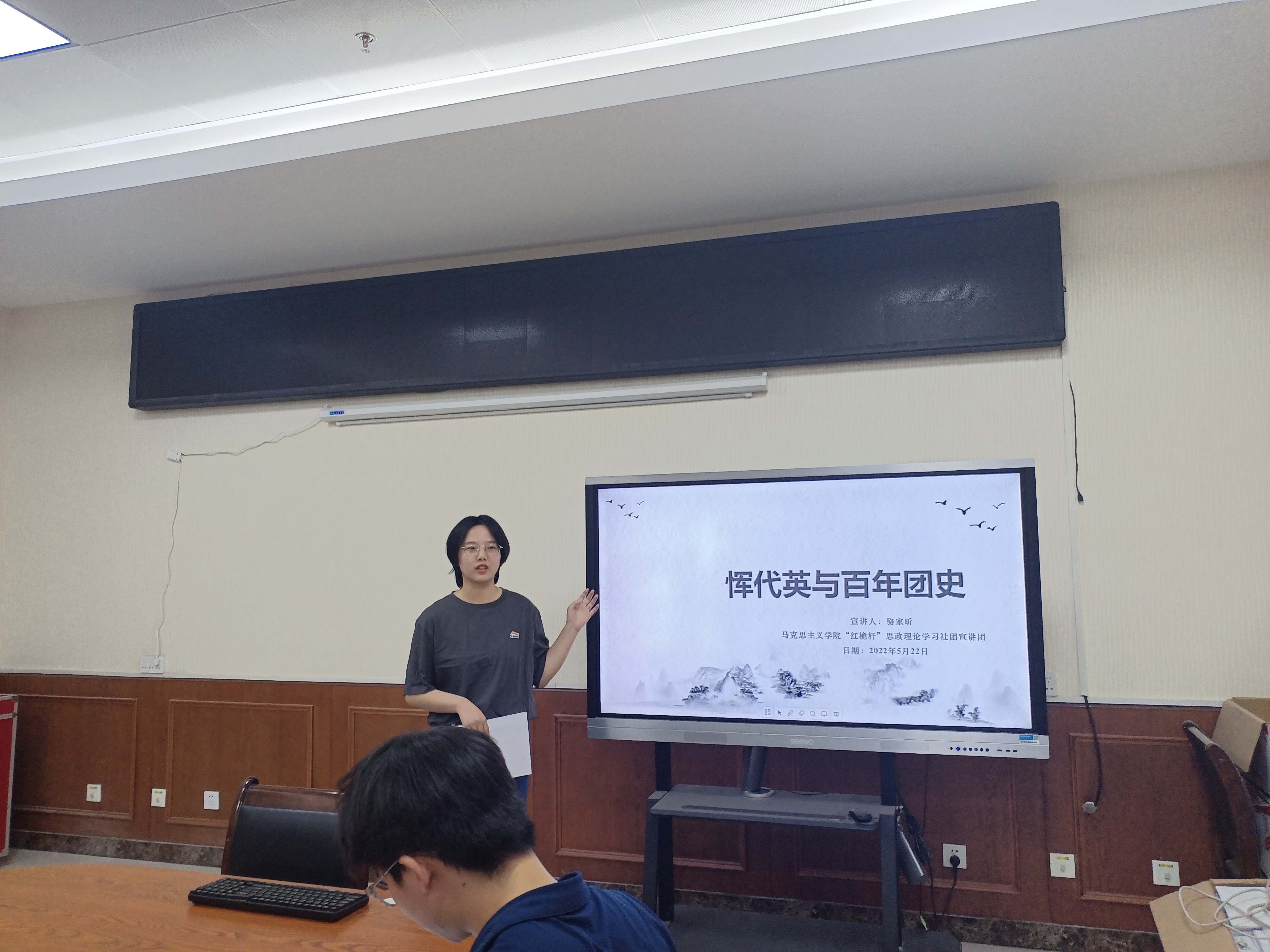 5月22日,我院“红桅杆”思政理论学习社团面向校青马工程团青精英三班同学开展了理论宣讲。本次活动的主讲人为2021级思想政治教育专业硕士研究生刘素琪同学、2021级思想政治教育专业硕士研究生骆家昕同学和2021级马克思主义基本原理专业的张依芳同学。