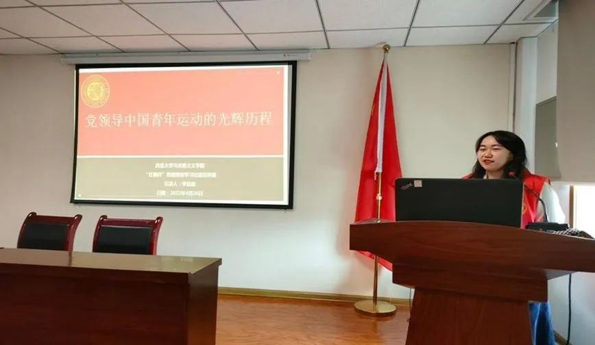 李晨鹿同学的宣讲题目是《党领导中国青年运动的光辉历程》,她着眼于即将到来的五四青年节,以讲述党的发展事业与青年运动之间的密切关系为主要内容,总结了百年青年工作的历史经验对当代中国青年运动的现实意义,进而指出党的百年伟业离不开一代又一代青年的接续奋斗与顽强拼搏。最后,她倡议广大党员要在学思悟践中坚定理想信念,用实际行动赓续传递先辈的革命理想与伟大精神。
