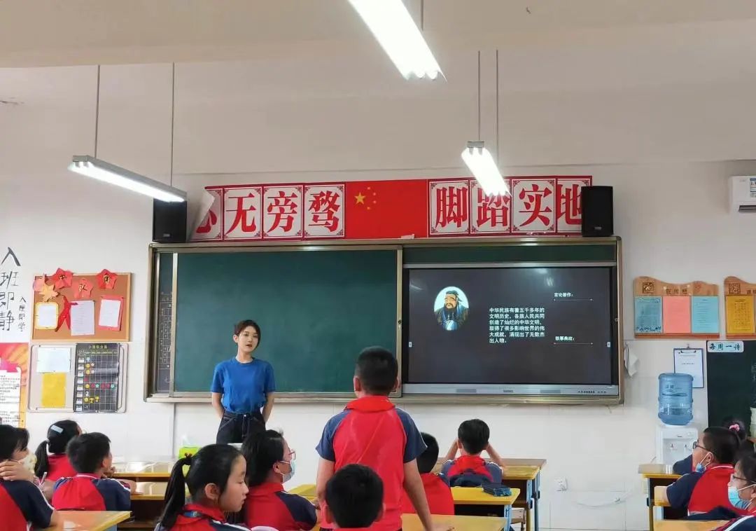 2022年6月10日,马克思主义学院“红桅杆”思想理论学习社团在西北大学附属大学城学校小学部,以《习近平新时代中国特色社会主义思想学生读本》(小学低年级)为主要内容,为四年级的小学生上了一堂韵味无穷的思政课。本次授课的9位主讲人分别是来自马克思主义基本原理、思想政治教育、马克思主义中国化研究与中国近代史基本问题专业的硕士研究生。
