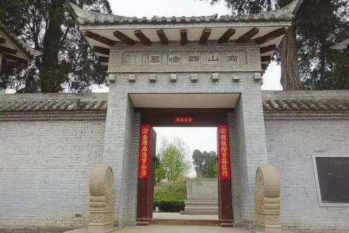 商山四皓碑林园,位于丹凤县城西,园内巨冢罗列,古柏环绕,碑石林立。
