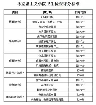 我院宿舍检查标准如下: