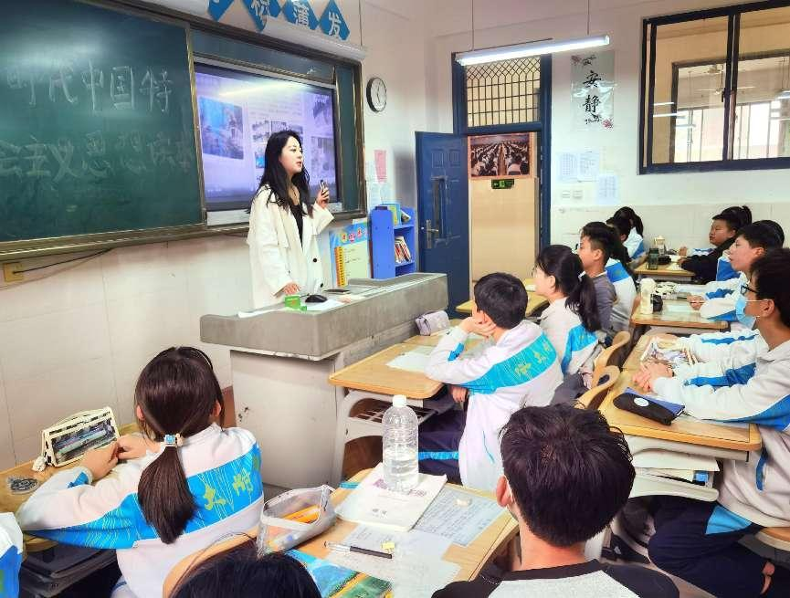 4月11日,我院“红桅杆”思政理论学习社团在长安区西北大学附属初级中学开展了一堂生动有趣的思政课。社团成员以《习近平新时代中国特色社会主义思想学生读本》为主要内容,在七年级的两个班级中进行了思政宣讲。本次主讲人是来自22级思想政治教育专业的硕士研究生张凡凡和杨靖垭。