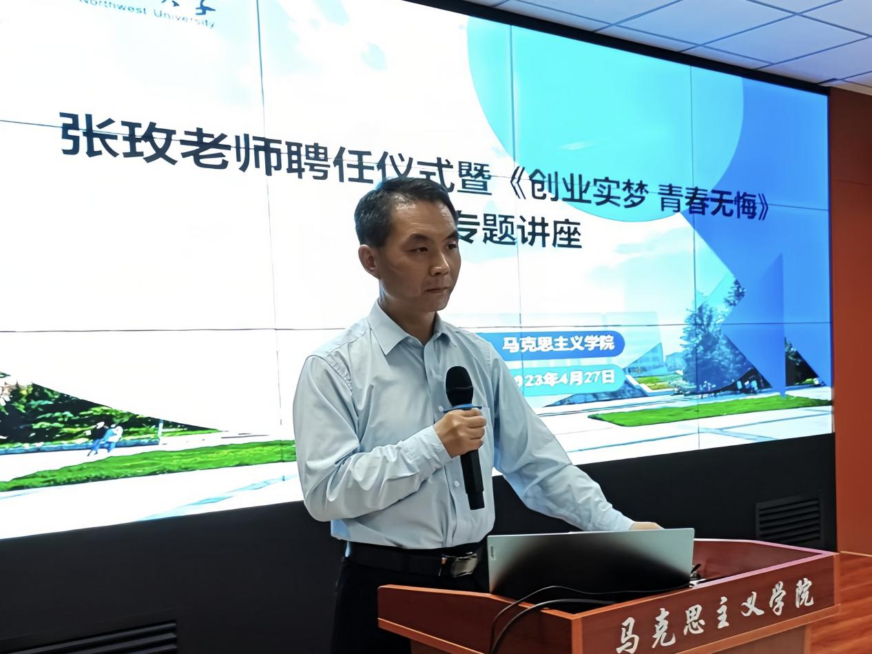 4月27日晚,张玫老师聘任仪式暨学生就业创业能力提升专题讲座在我院学术报告厅举办。西安华浦水处理设备有限公司、陕西华浦环保科技有限公司总裁,陕西省青年五四奖章获得者张玫,西北大学学生就业创业指导服务中心常务副主任丁莹莹、我院党委副书记邵平、我院中国近现代史纲要教研部主任苟昭赟及我院研究生参加活动。本次活动由院团委书记刘娟主持。