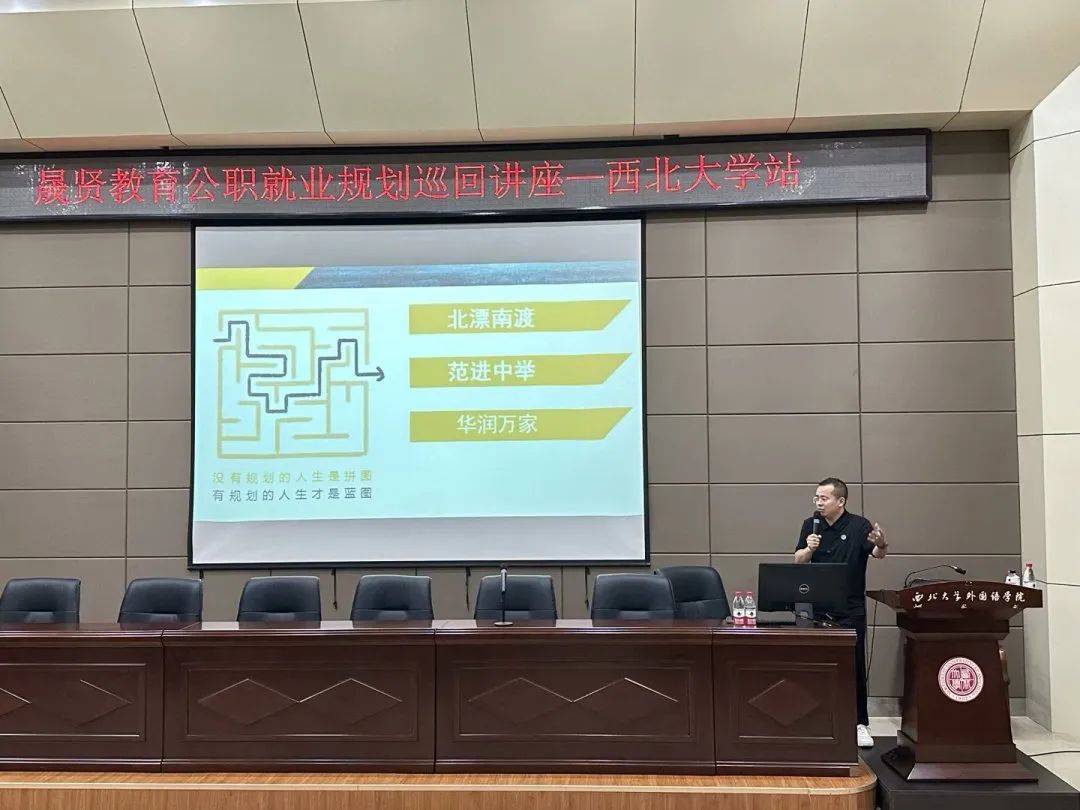 9月14日晚上,由学生就业创业指导服务中心主办、我院和外国语学院联合承办的《应届生如何高分快速上岸—公职就业规划巡回》专题讲座在外国语学院第二课堂开展,本次讲座特邀晟贤教育资深讲师徐申主讲。