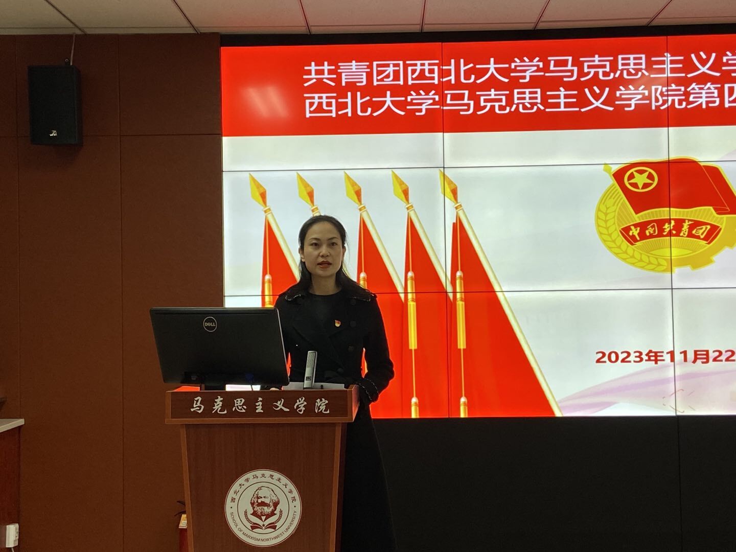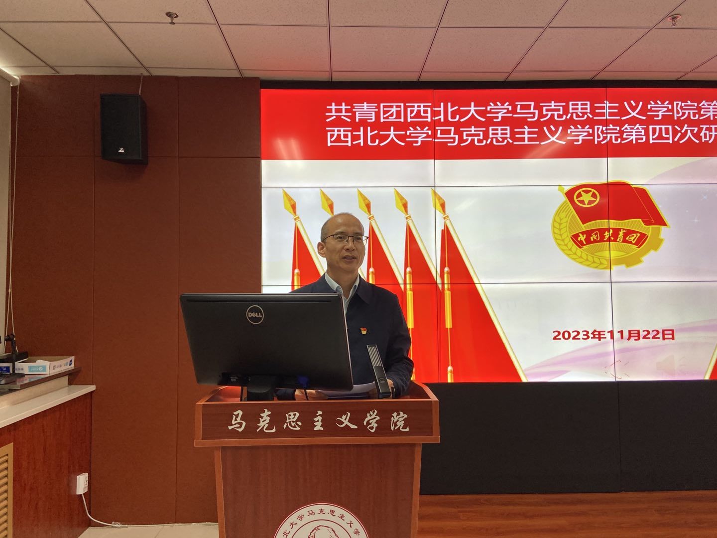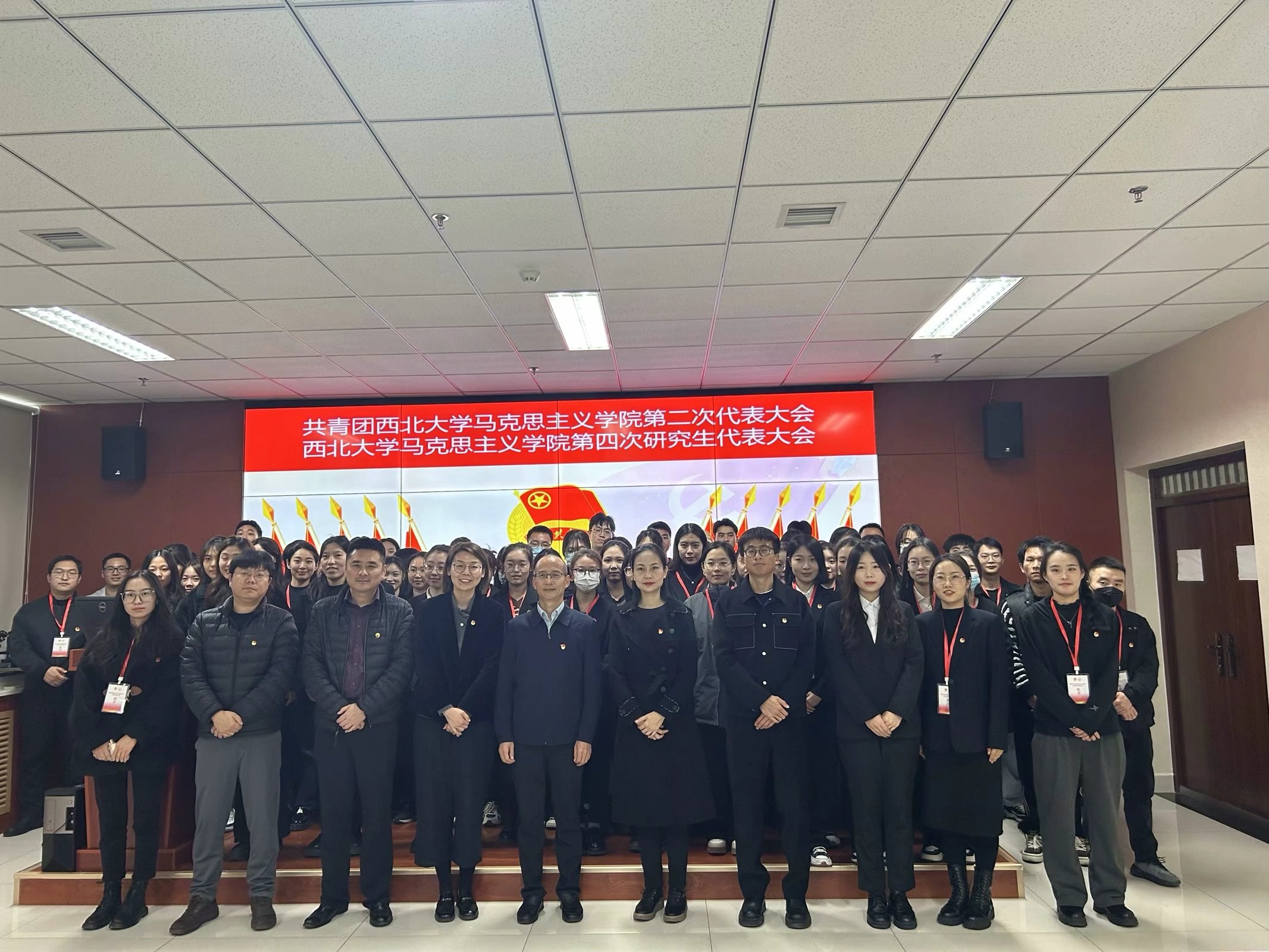 11月22日下午,共青团必赢242net官网第二次代表大会暨第四次研究生代表大会在西学楼1104报告厅隆重召开。我院党委书记韩凯峰、校团委副书记曹智、院党委副书记邵平、法学院团委书记陈竟、安莱学院团委书记刘扬、外国语学院团委书记马圣渤、校研究生会主席团成员赵妍以及马克思主义学院团员及研究生代表参加本次大会。会议由学院团委书记刘娟主持。