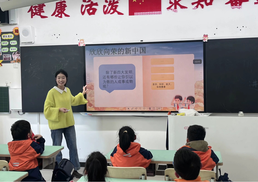 黄雅利以《我自豪我是中国人》为题,带领学生在新四大发明中感受今日中国的蒸蒸日上,在古代四大发明中见证中华民族的灿烂辉煌,在新旧交替中激发同学们的爱国情和自豪感。