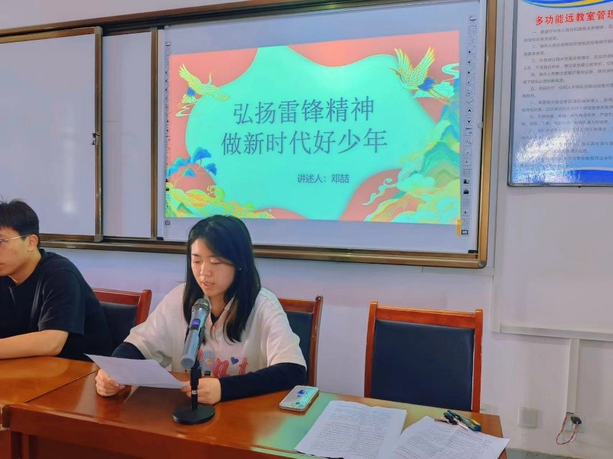 邓喆以《弘扬雷锋精神,做新时代好少年》为题,从雷锋纪念日、雷锋简介、雷锋的故事、雷锋精神永放光芒四个方面进行了精彩的讲述,让雷锋的奉献精神在孩子们的心中生根,让雷锋的无私品质在孩子们的内心世界里发芽。