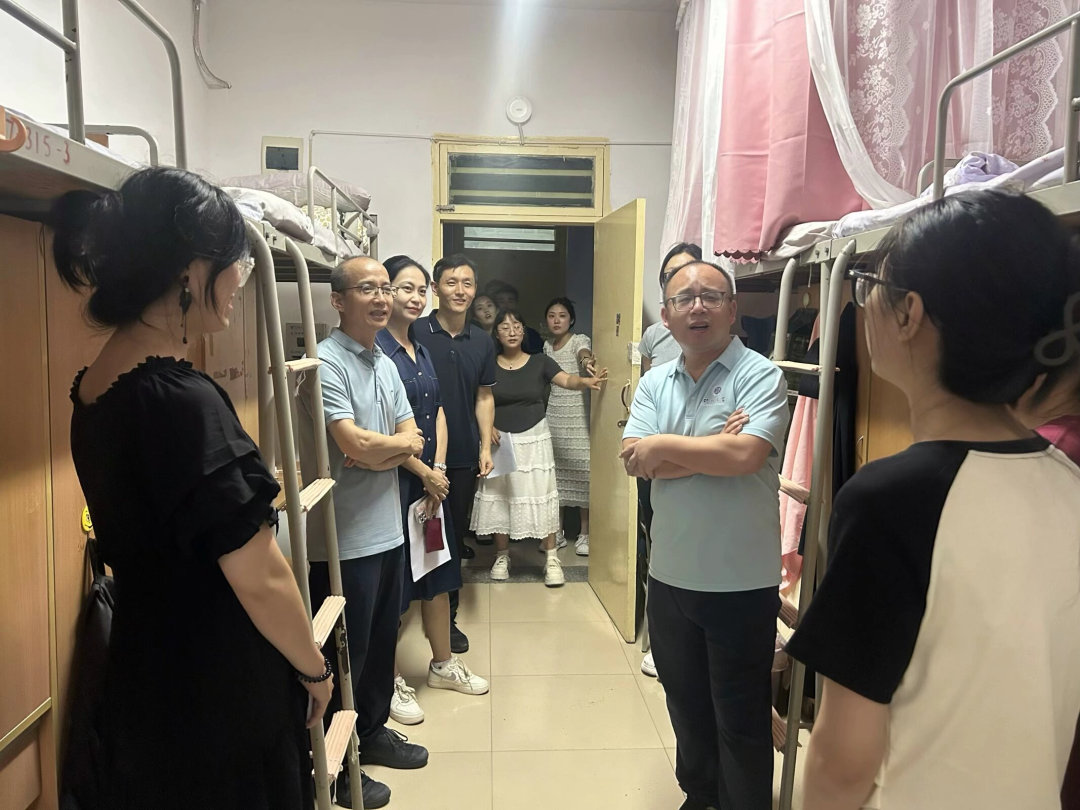 8月24日晚,学院党委书记韩凯峰、院长何博、党委副书记邵平、副院长李志松一行来到学生公寓看望2024级新生。