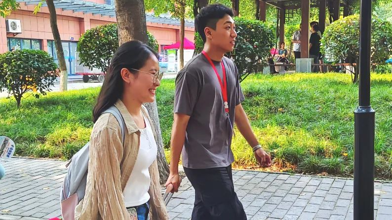 迎新志愿者们早早地等候在北门、南门以及迎新报到点等每一处新生可能需要帮助的地方:帮忙提随身行李,指引报到的方向,耐心解答各种疑问。在报到现场,志愿者们耐心地引导新生完成各项手续,细心地讲解注意事项。他们的耐心和细心,将“以家人之名”向新生们传递温暖与热情。