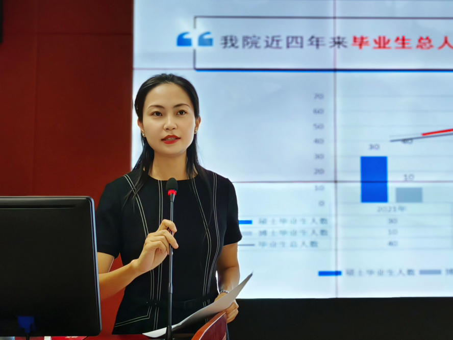 会上,邵平从学院2021-2024年毕业生生源、就业单位以及就业地区等三个方面,对学院近四年研究生的整体就业情况进行了详细分析,帮助与会毕业生了解当前就业形势,树立正确的就业目标。
