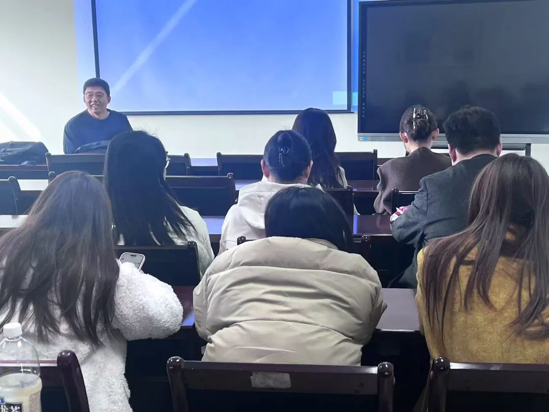 郭莹老师围绕新学期的学习规划与未来发展向同学们提出了几点建议。她强调,大家首先要学好专业课,有方向地阅读高质量文献,夯实学术基础;其次,要多与导师沟通,尽早确定毕业论文选题,为研究做准备。同时,她建议同学们要尽早明确择业目标,尤其是考公考编的同学应提前了解相关信息并做好准备。最后,她提醒同学们在学习中遇到问题要及时与她沟通,并祝愿大家新学期顺利。