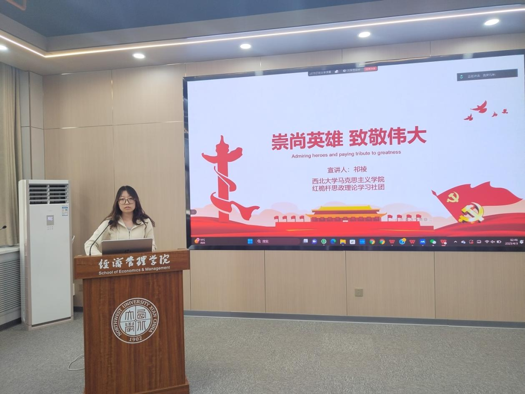 4月3日,我院红桅杆思政理论学习社团为校青马先锋3班、道合1班“清明祭英烈”主题团日活动开展理论宣讲,本次活动的主讲人为2024级中国近现代史基本问题研究专业的硕士研究生祁祾。