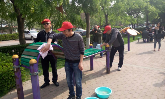 上午10点,在未央区司法局新航驿站工作人员的带领下,2014级专业硕士党支部党员志愿者团队来到未央区的城市运动公园,参与每月一次的社区矫正人员公园“大擦洗”公益劳动。