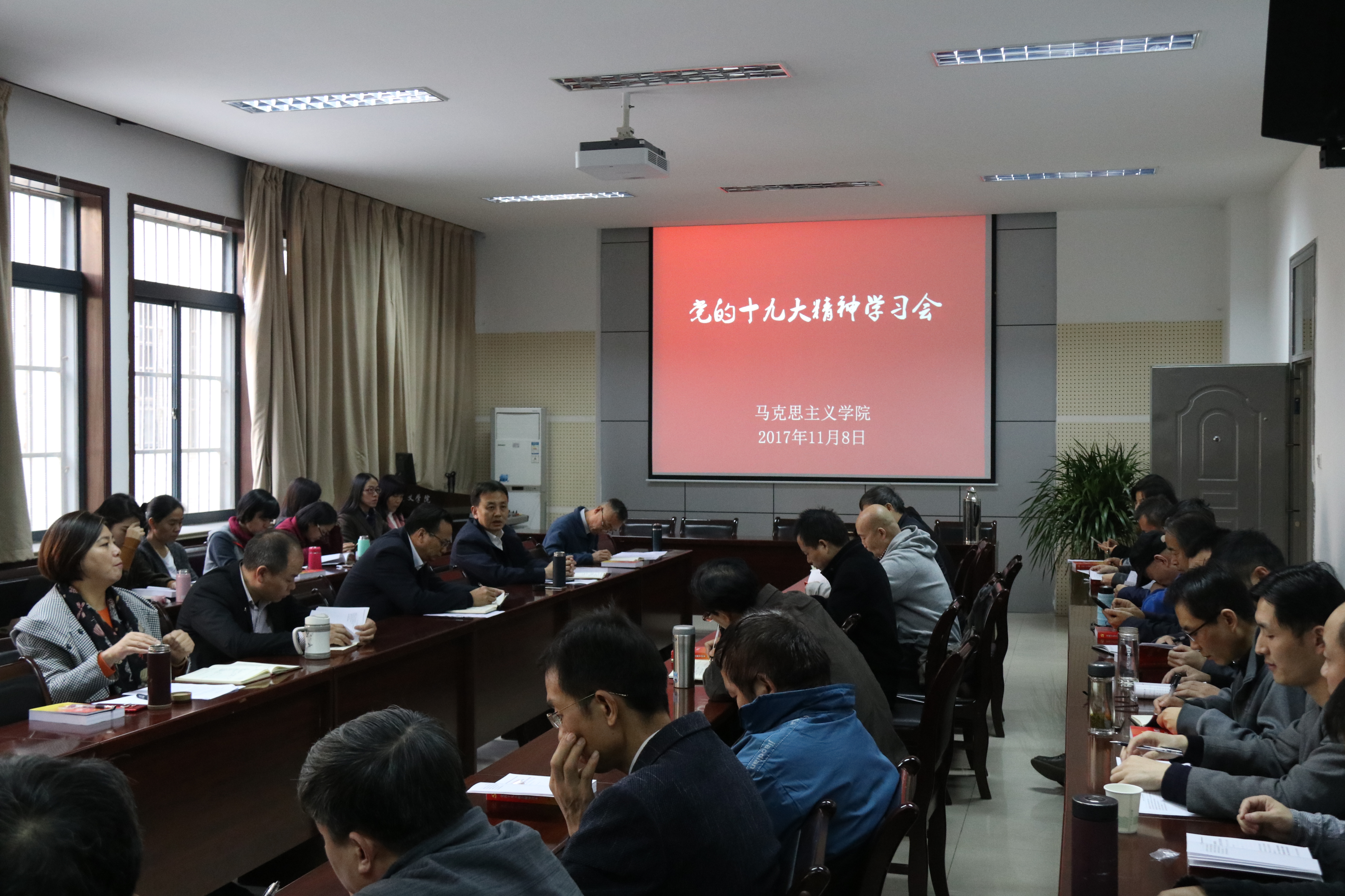 118日下午,马克思主义学院组织学院全体教师开展党的十九大精神专题学习会。学习会结合学院近期工作,围绕学习党的十九大报告,领会和贯彻十九大精神这一主题展开了交流和讨论。