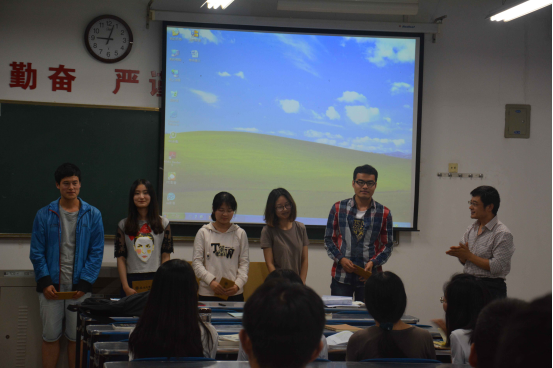 马老师结合自己经历指出,在大学的学习生活中,我们对未来总会感到迷茫,但如果此时有一群人能够给予我们以启发与帮助结果可能大不相同。本次报告会我们邀请了4名12级优秀的毕业生以及1名研一的学姐进行经验交流,希望对大家能有所帮助。