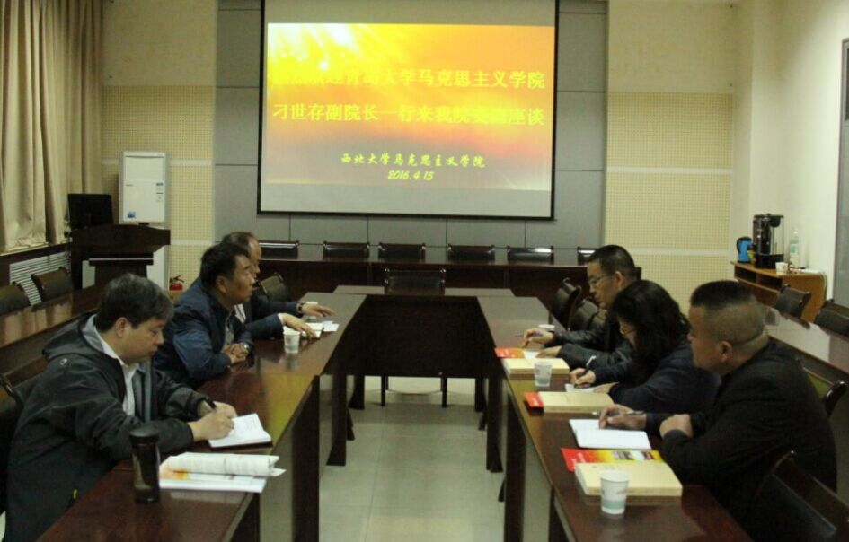 杨洪院长介绍了西北大学简况,我院学科发展、教学科研和队伍建设概况。刁世存副院长介绍了青岛大的的简况和该校马克思主义学院的概况,以及本次调研的目的。接着,大家就思想政治理论课课堂教学、实践教学、网络教学以及教学管理和考试改革等方面的具体做法和成功经验进行了充分的交流。