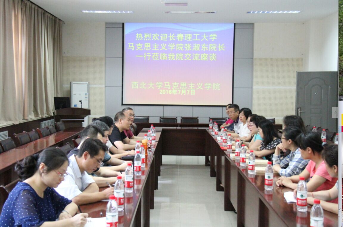 2016年7月7日,长春理工大学马克思主义学院张淑东院长一行23人到我院交流,学院副院长李宪清老师、王强教授和部分教师代表参加了座谈会。