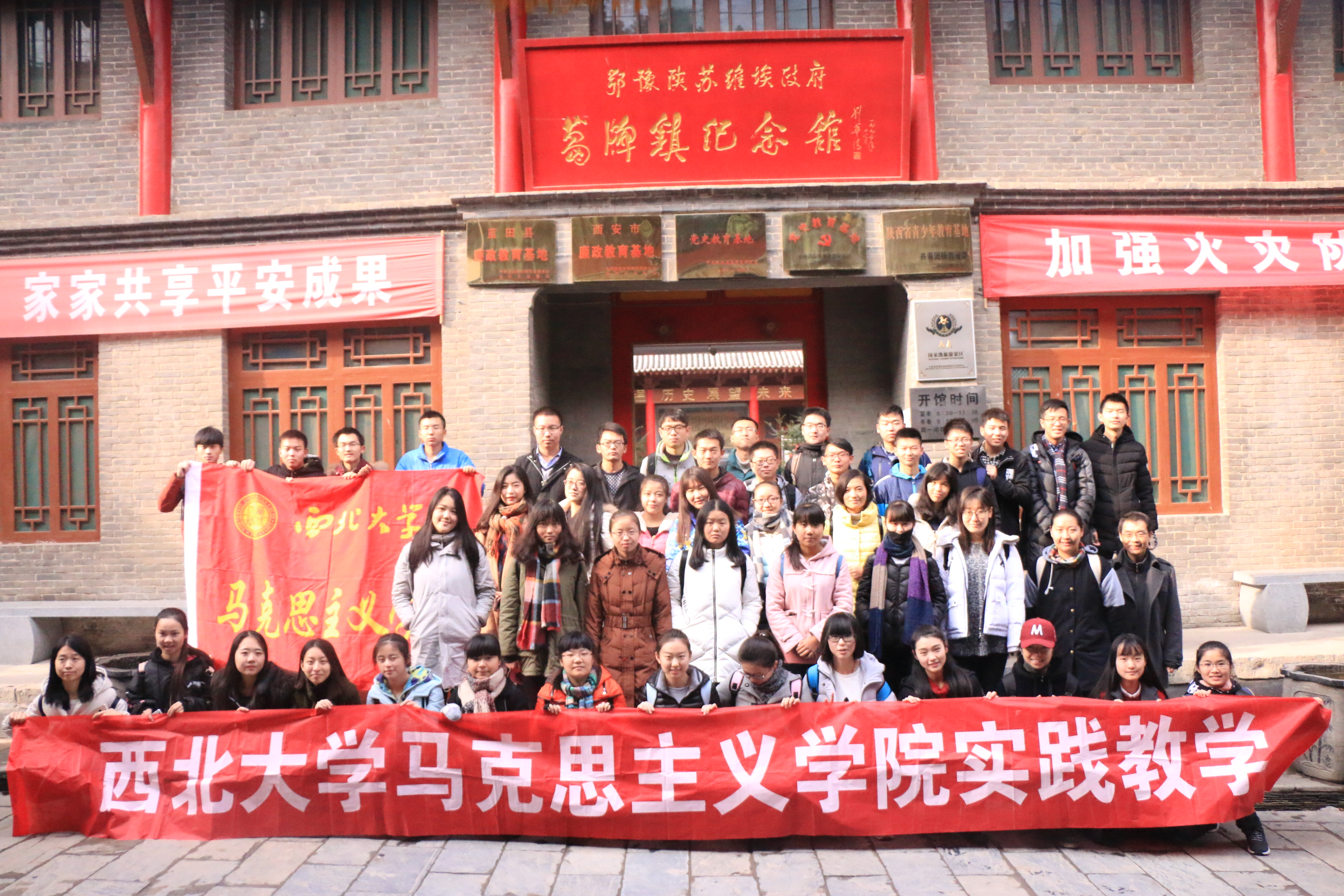为进一步丰富和创新思想政治理论课教学模式,马克思主义学院中国近现代史纲要教研部于2016年12月3日组织全校2016级本科生代表49人赴蓝田县葛牌镇革命历史遗存开展实践教学活动。