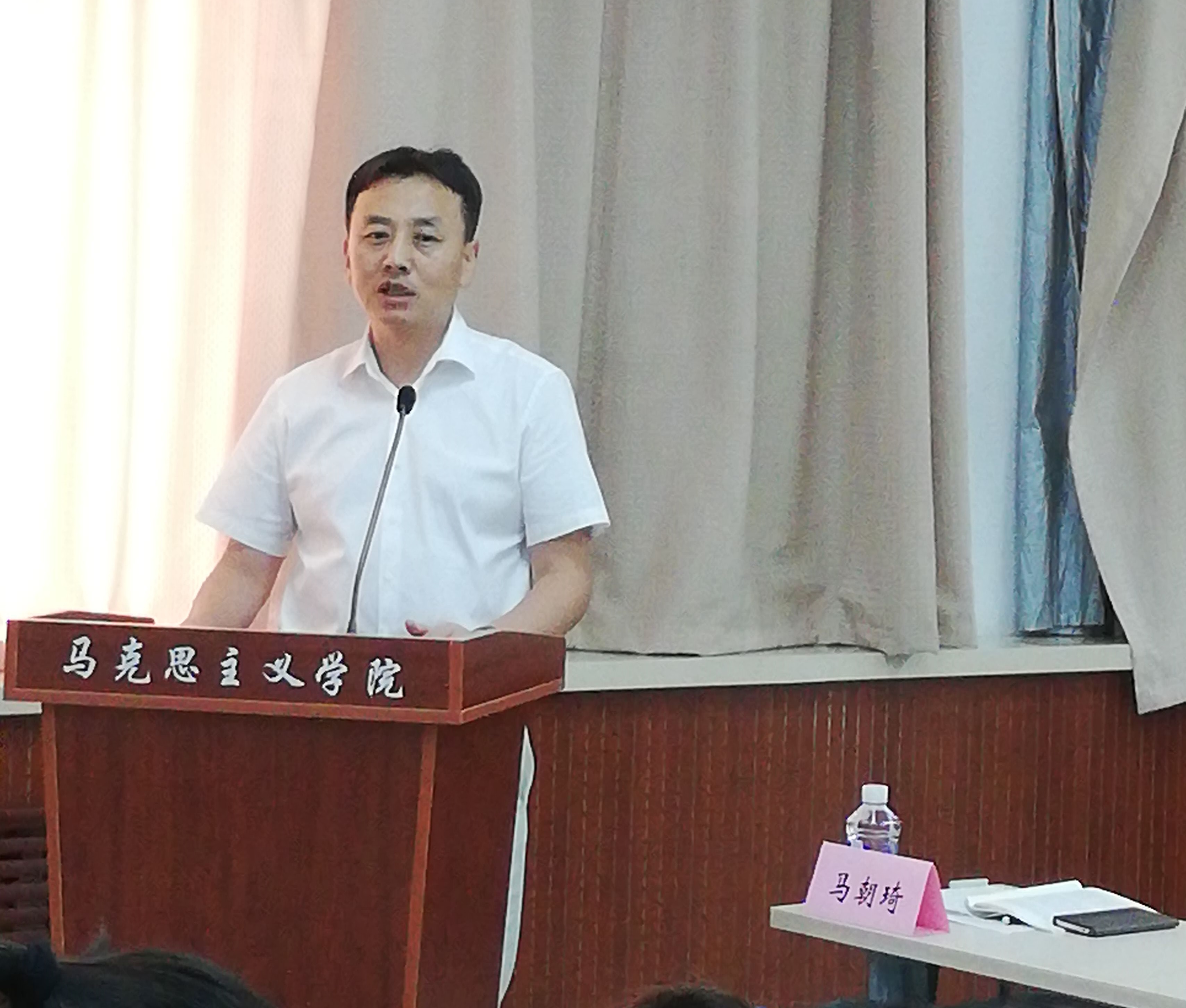 最后,马朝琦书记做了总结发言。马书记表示马克思主义学院有信心把大家打造的更加优秀,也希望同学们继续发扬西大公诚勤朴的精神,扑下身子多读书,跟上排头多引领,崇德修身讲学问,明辨笃实讲学风,常学常新,学习上积极,学业上优秀,为家庭、国家、人民、全世界奉献自己。