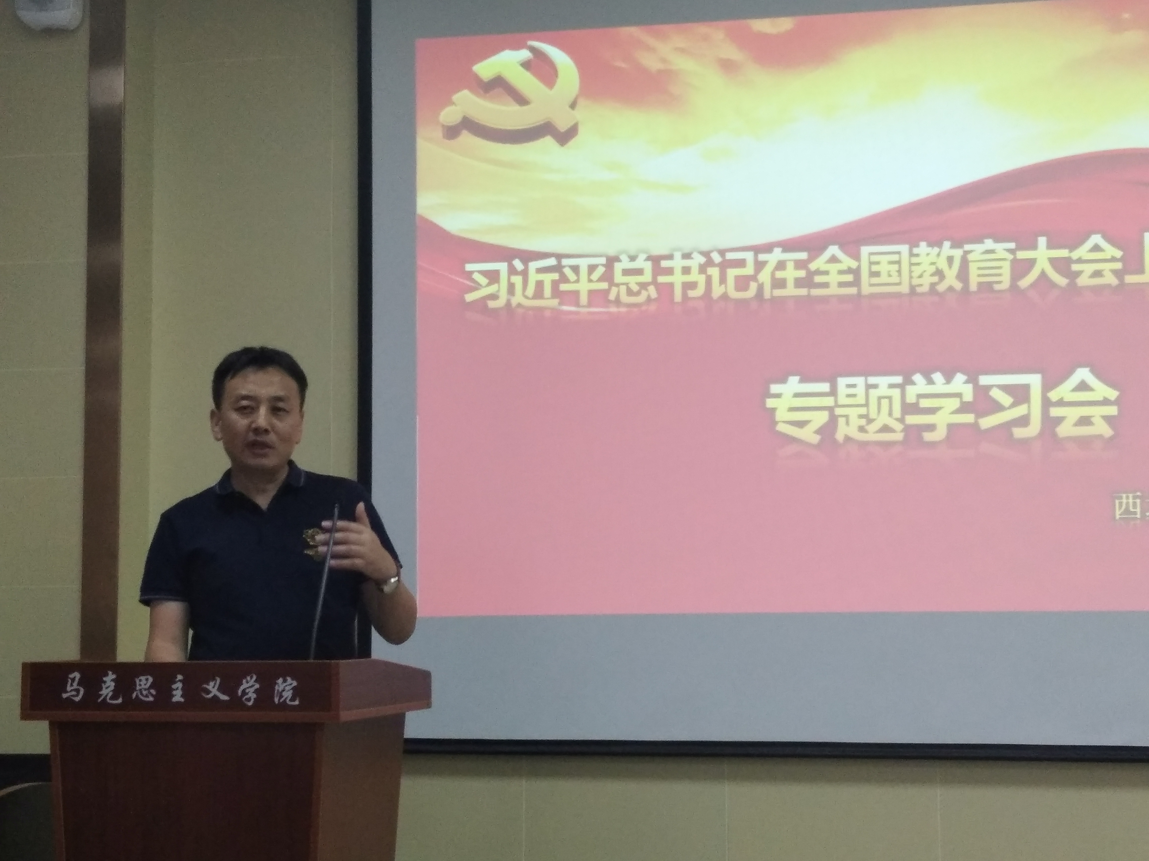 9月11日下午,马克思主义学院党委组织学生党员召开习近平总书记在全国教育大会上的重要讲话专题学习会,学院党委负责人、全体学生党员、入党积极分子参加学习讨论。