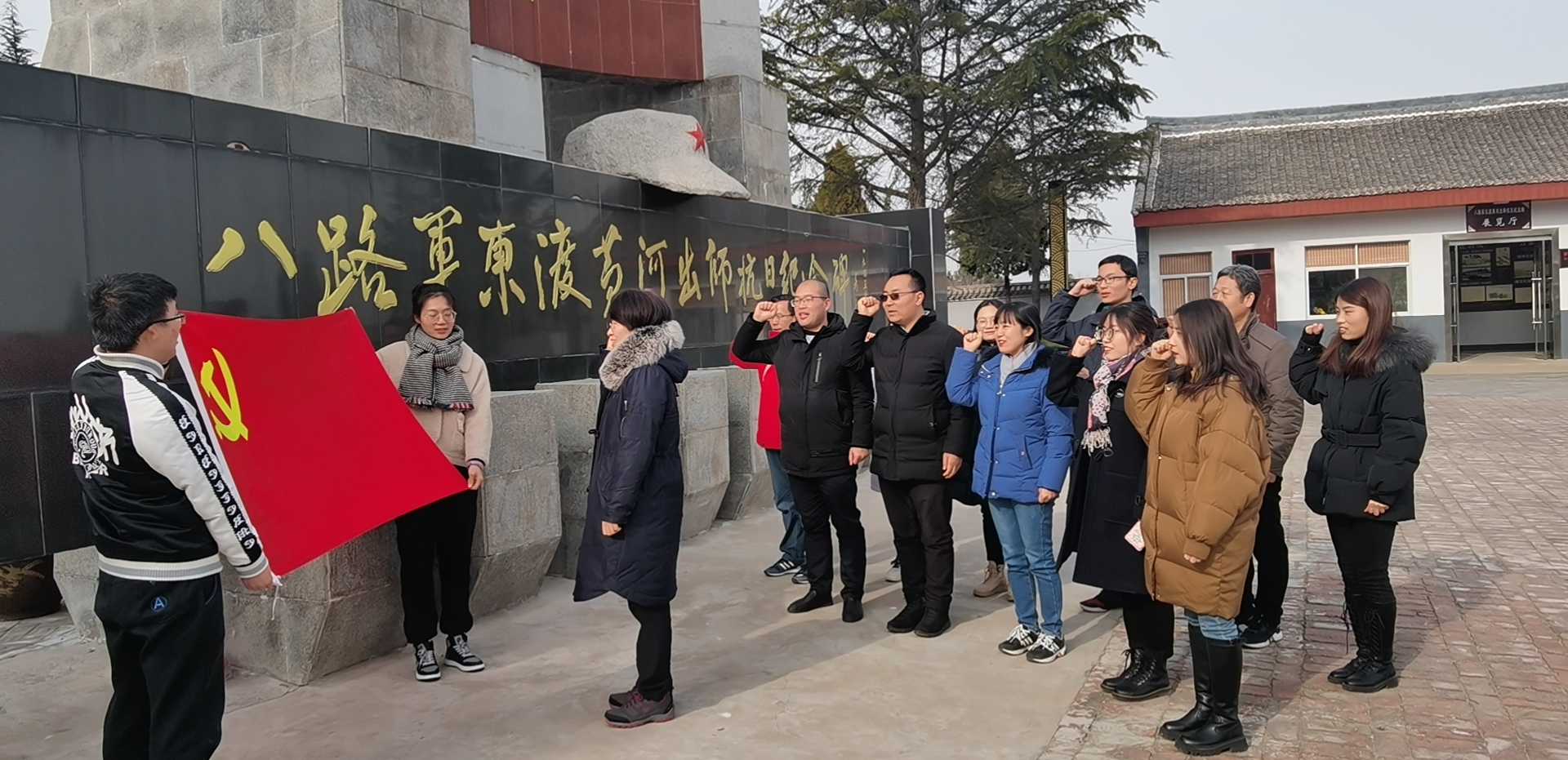党员同志们瞻仰了八路军东渡黄河出师抗日纪念碑、纪念馆等多处红色教育基地以及汉太史公司马祠等廉政教育基地,并在八路军东渡黄河出师抗日纪念碑下举行了马克思主义学院教工第一党支部成员李瑞华同志的预备党员转正宣誓仪式,党员重温入党誓词。