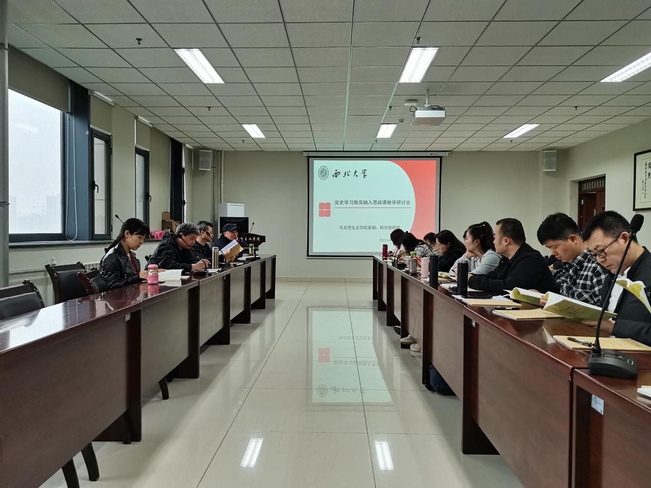 为深入贯彻落实习近平总书记在党史学习教育动员大会上的重要讲话精神,讲好党史故事,传承红色基因,坚守立德树人初心。4月23日上午,王振民教授主持召开了马克思主义学院召开党史学习教育融入思政课教学研讨会,2020-2021学年春季学期讲授《思想道德修养与法律基础》和《毛泽东思想和中国特色社会主义理论体系概论》的思政课教师参加本次会议。