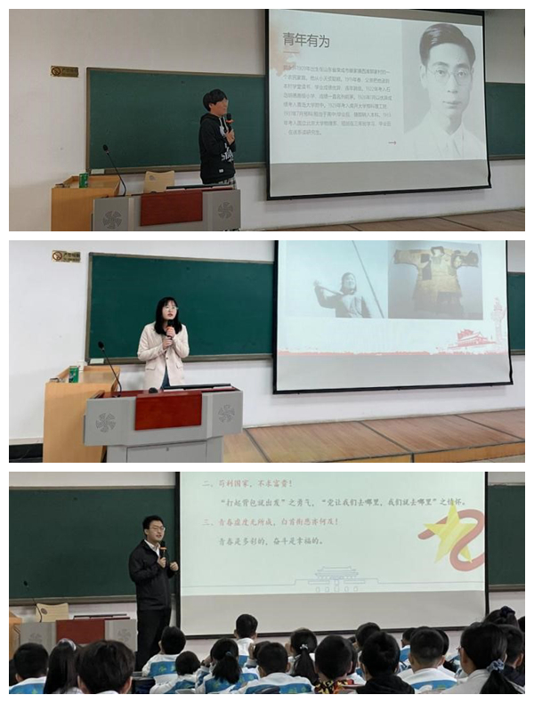 4月28日,马克思主义学院“红桅杆”思政理论学习社团成员走进我校附中,2019级思想政治教育专业硕士研究生孙静、中国近现代史基本问题研究专业硕士研究生宋凡、马克思主义中国化专业硕士研究生赵凯凯等3位主讲人,通过生动的故事和鲜活的事例,引导同学们了解党、热爱党、拥护党。