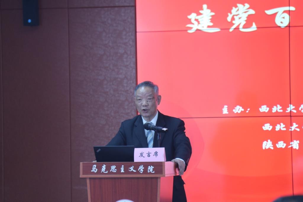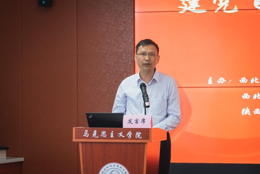 5月8日,由西北大学社科处、必赢242net官网、西北大学延安精神与党的建设研究院、陕西省重点中国特色社会主义理论体系研究中心、陕西省思想政治工作重点研究基地l---新时代思想政治工作基础理论研究基地等单位共同举办的建党百年与中华民族伟大复兴高层论坛在我校长安校区成功举行。陕西省委宣传部理论处处长何军、陕西省哲学社会科学工作办公室重大项目负责人王志伟、中共中央党校(国家行政学院)柳建辉教授、中共中央党史和文献研究院姚金果研究员、北京大学马克思主义学院林绪武教授、华中师范大学马克思主义学院李良明教授、人民出版社副总编辑陈鹏鸣编审、陕西师范大学党委书记付建成教授、陕西师范大学马克思主义学院马启民教授、延安大学高尚斌教授、西北大学延安精神与党的建设研究院院长梁星亮教授、西北大学特聘教授姚文琦教授、西安财经大学马克思主义学院院长闫团结教授、西安理工大学马克思主义学院院长梁严冰教授以及必赢242net官网党政领导、部分教师和学生代表近百人出席会议。我校党委副书记、马克思主义学院院长吕建荣主持论坛。