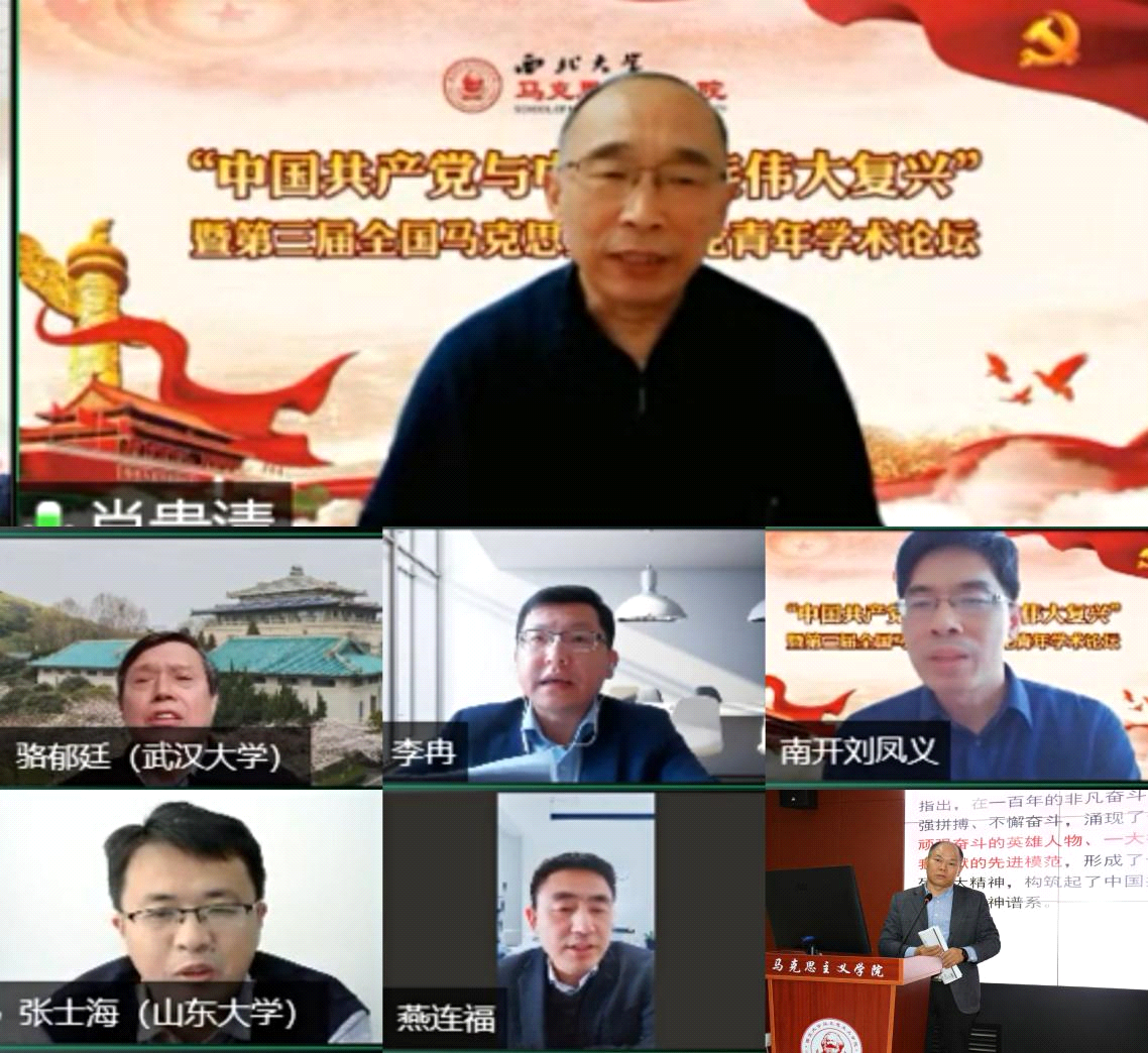 11月28日,由必赢242net官网协同清华大学习近平新时代中国特色社会主义思想研究院等单位联合举办的“中国共产党与中华民族伟大复兴”暨第三届全国马克思主义理论青年学术论坛在西北大学长安校区以线上线下相结合的方式举行。我校党委副书记、马克思主义学院院长吕建荣出席会议并致辞。清华大学马克思主义学院教授肖贵清、武汉大学马克思主义学院院长骆郁廷、复旦大学马克思主义学院院长李冉、南开大学马克思主义学院院长刘凤仪、山东大学马克思主义学院院长张士海、西安交通大学马克思主义学院院长燕连福等出席了本次论坛,来自全国70多所高校的优秀硕博研究生,以及我校马克思主义学院师生代表参加了论坛。开幕式由我校马克思主义学院党委负责人主持。