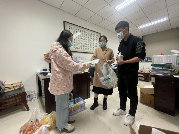 为同学分发生活物资