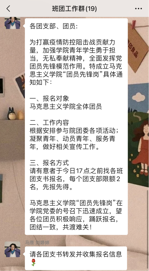 三是抓好学生干部队伍。学院充分发挥学生骨干作用,使学生干部在关键时期成为辅导员的得力助手,在学院学生信息填报提醒、信息统计、舆情监测等方面发挥积极作用。学院指导院研究生会组建学生疫情防控小组,确保每个年级、专业、宿舍都有学生干部联络人,确保信息渠道通畅,并建立了学工干部值班制度。