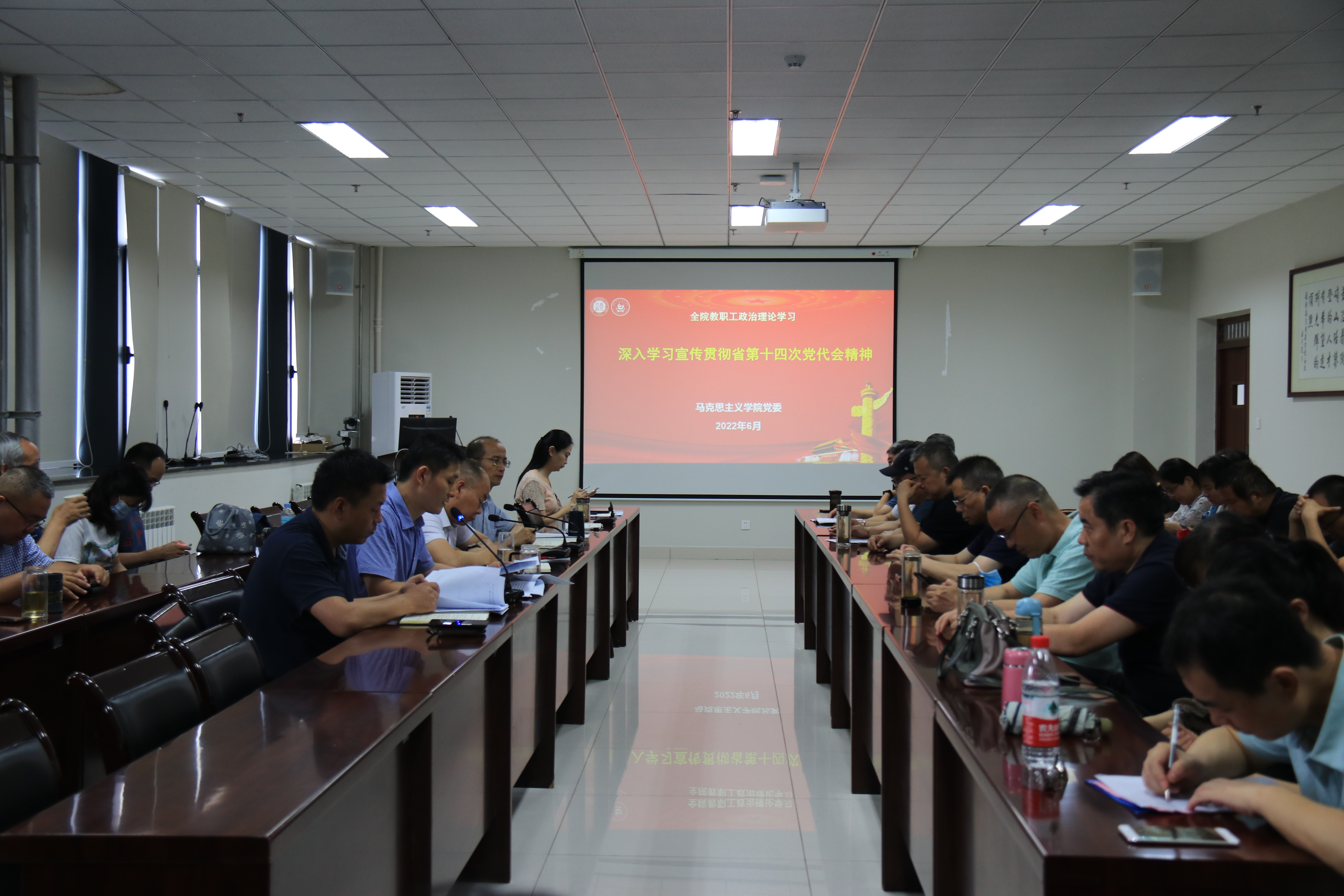 6月22日下午,我院教职工集体学习省第十四次党代会精神,院党委中心组成员、全体教职工参加。