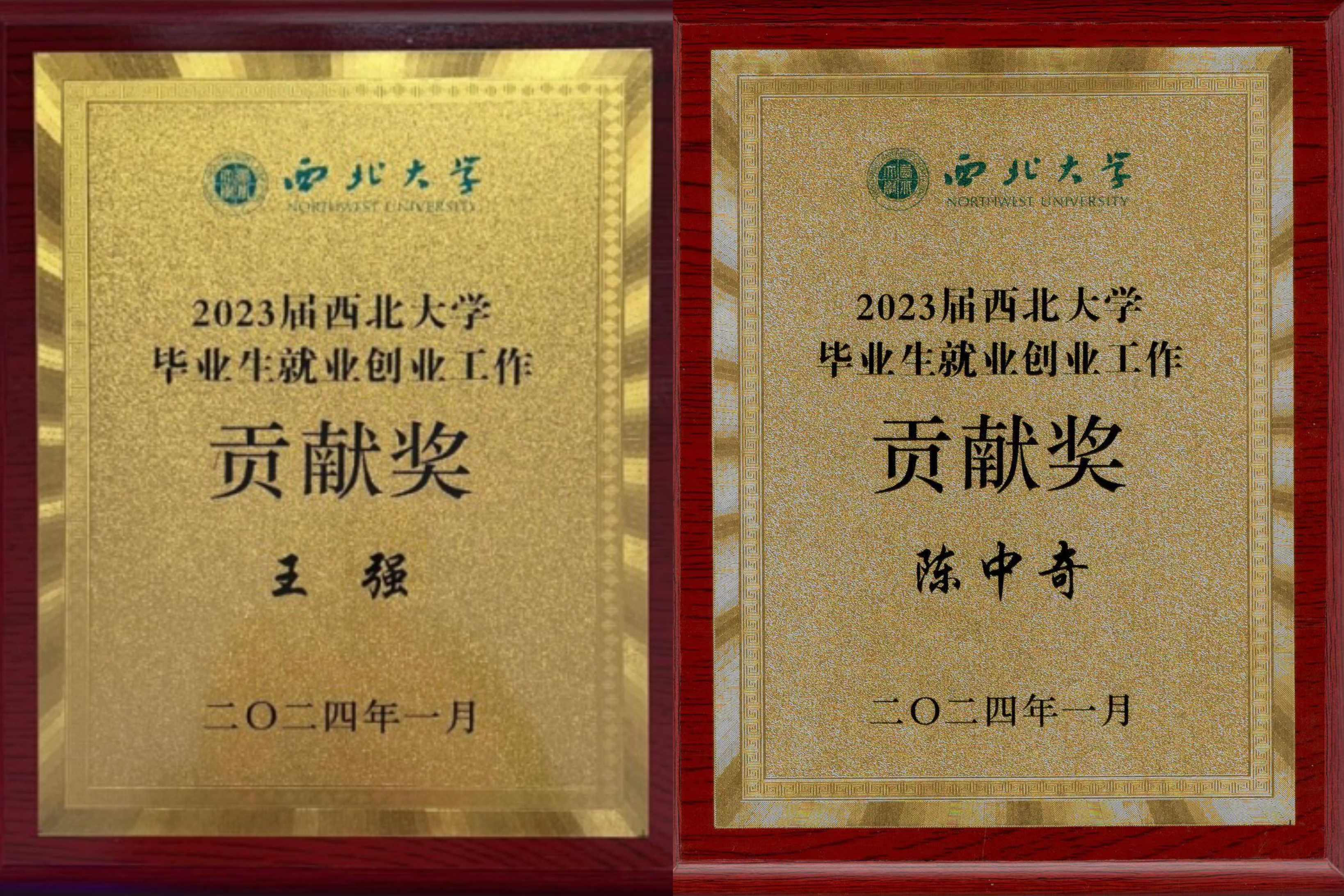 王强教授、陈中奇教授荣获“2023届西北大学毕业生就业创业工作贡献奖”