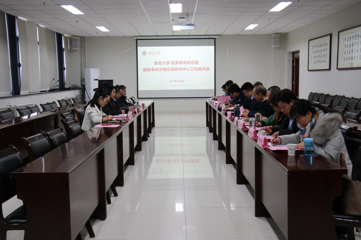 1月9日上午,西北大学、延安革命纪念馆国家革命文物协同研究中心工作座谈会在我校长安校区召开,我校党委常委、副校长吴振磊出席并主持座谈会。延安革命纪念馆党委书记、馆长刘妮一行五人,我校社科处、文化遗产学院、法学院等有关单位负责人,我院党委书记韩凯峰、院长何博及部分教师代表参会。