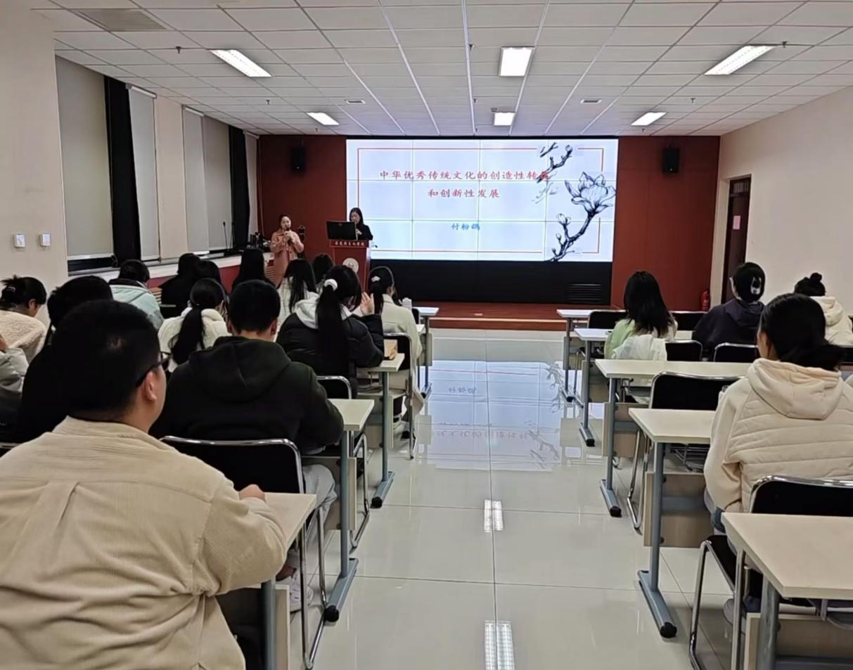 11月14日晚,“导师讲坛”第208讲在我院学术报告厅举行。我院付粉鸽教授作了题为《中华优秀传统文化的创造性转化和创新性发展》的学术讲座,学院2024级全体研究生参加。