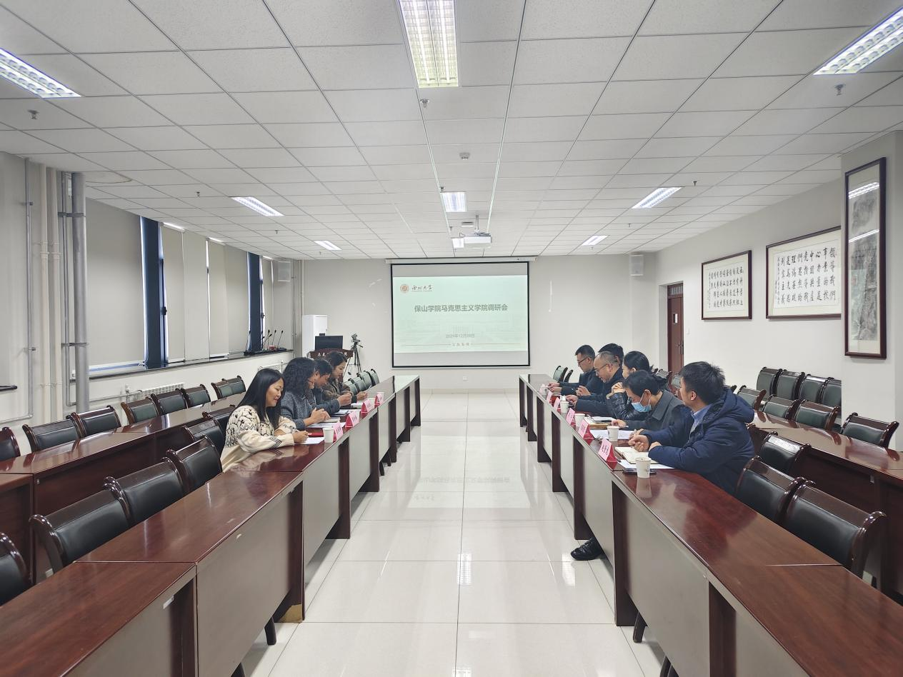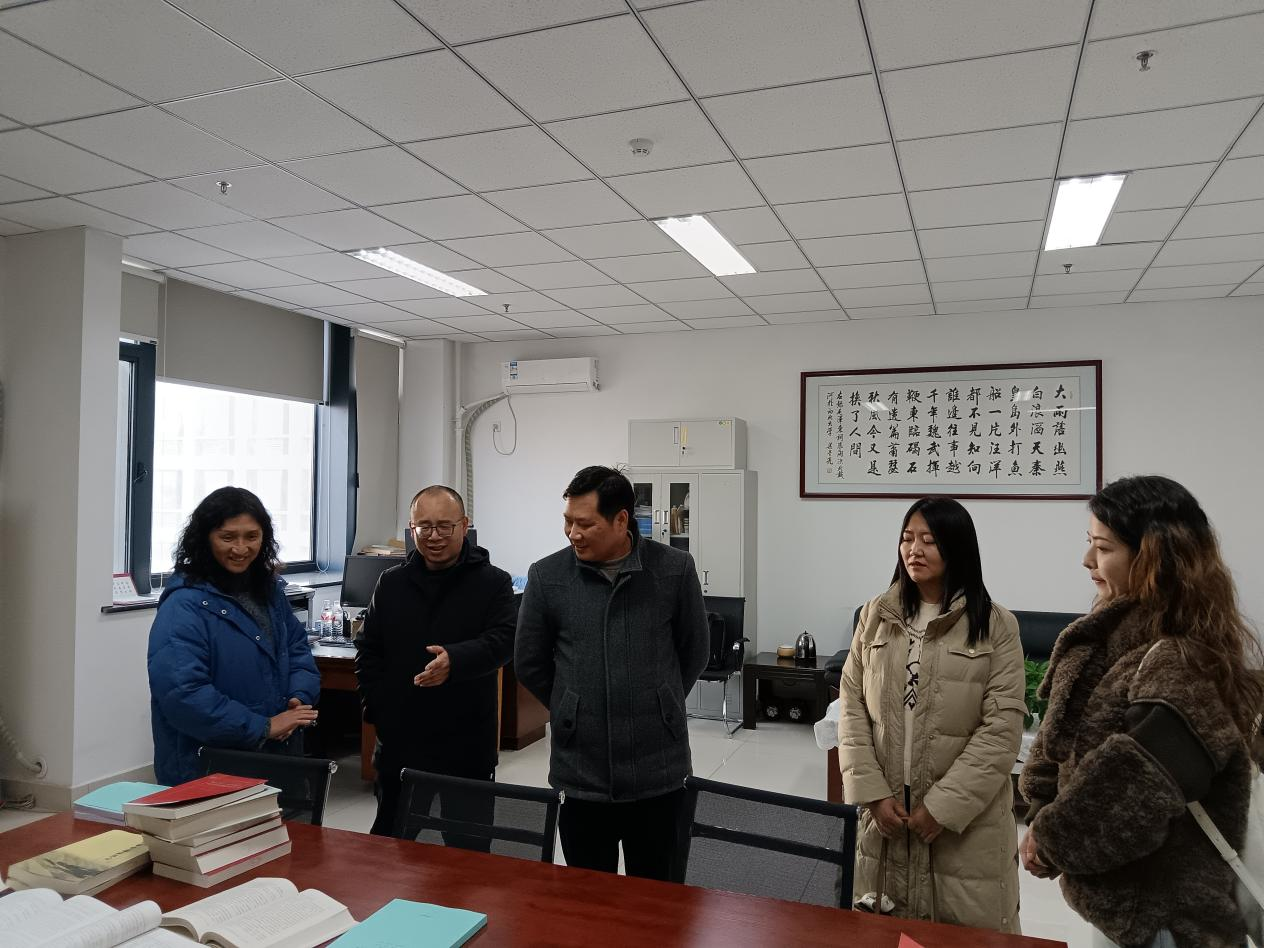 12月26日下午,保山学院马克思主义学院院长张吟梅、副院长杨福林、思政教学部主任朱丽梅、党政办主任马琳娜一行4人来我院交流座谈。我院院长何博、党委副书记邵平、副院长袁成、院长助理赵景龙、苟昭赟副教授、赵沛副教授等参加了座谈。