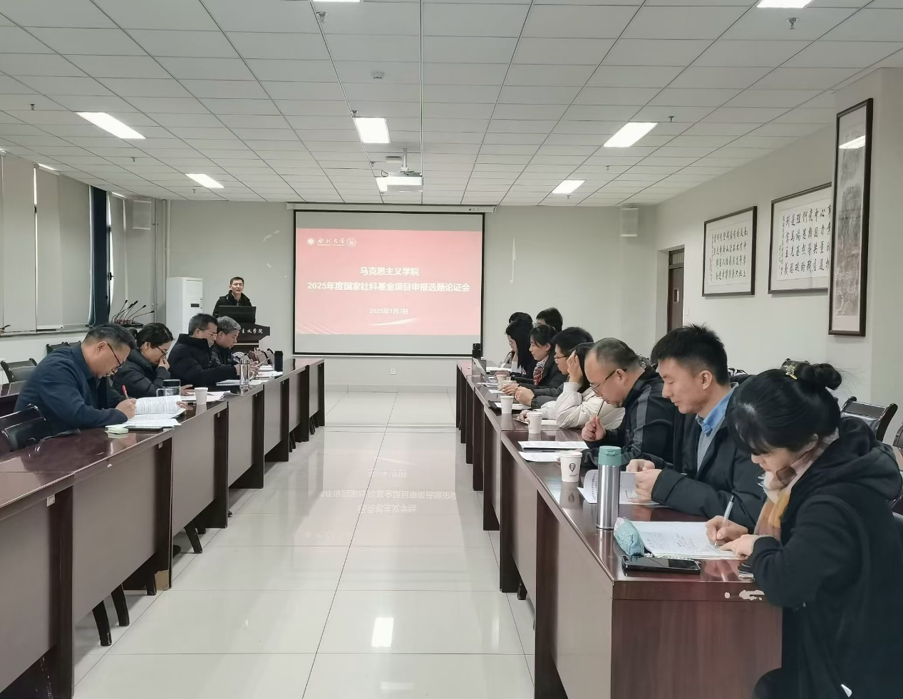 1月3日上午,我院在会议室召开2025年度国家社科基金项目申报选题论证会,许门友教授、王强教授、同雪莉教授、陈中奇教授、张学见教授作为评委专家出席,学院预申报2025年度国家社科基金项目的教师参加论证,会议由学院副院长李志松主持。