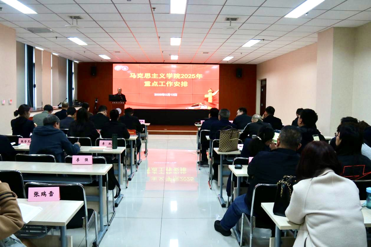 会上,院长何博从以党建工作引领学院高质量发展、努力开创教师队伍建设新局面、着力建构具有西大特色的“大思政课”育人格局、全力提升马理论专业人才培养质量、开展高水平有组织科研、提升学院和学科影响力等六个方面介绍了学院2025年工作的十七条要点。副院长李志松传达了学校2025年春季本科教学工作会暨审核评估工作推进会的工作要求,对各教研部开展集体备课会学好用好《参考讲义》提出明确要求。
