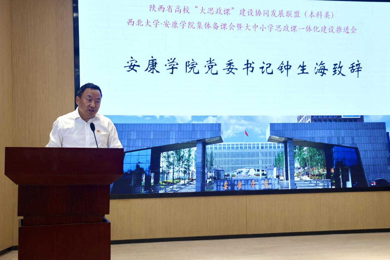 5月10日下午,在开幕式上安康学院党委书记钟生海和西北大学党委副书记、纪委书记、省纪委监委驻校纪检监察组组长肖道远分别作了致辞。钟生海指出,将习近平文化思想融入高校思想政治工作和思政课教学,既是落实立德树人根本任务的必然要求,也是推动思政课内涵式发展的重要途径。肖道远指出,2023年至今,联盟先后联合省内多所高校,开展了多次集体备课会,增进了校际间的交流与联系。他希望西北大学和兄弟高校一道,以联盟为依托,共同打造“三大平台”:“大思政课”建设集体备课平台、“大思政课”建设标杆示范、“大思政课”建设校际交流平台,切实推动陕西省高校“大思政课”的联动创新。
