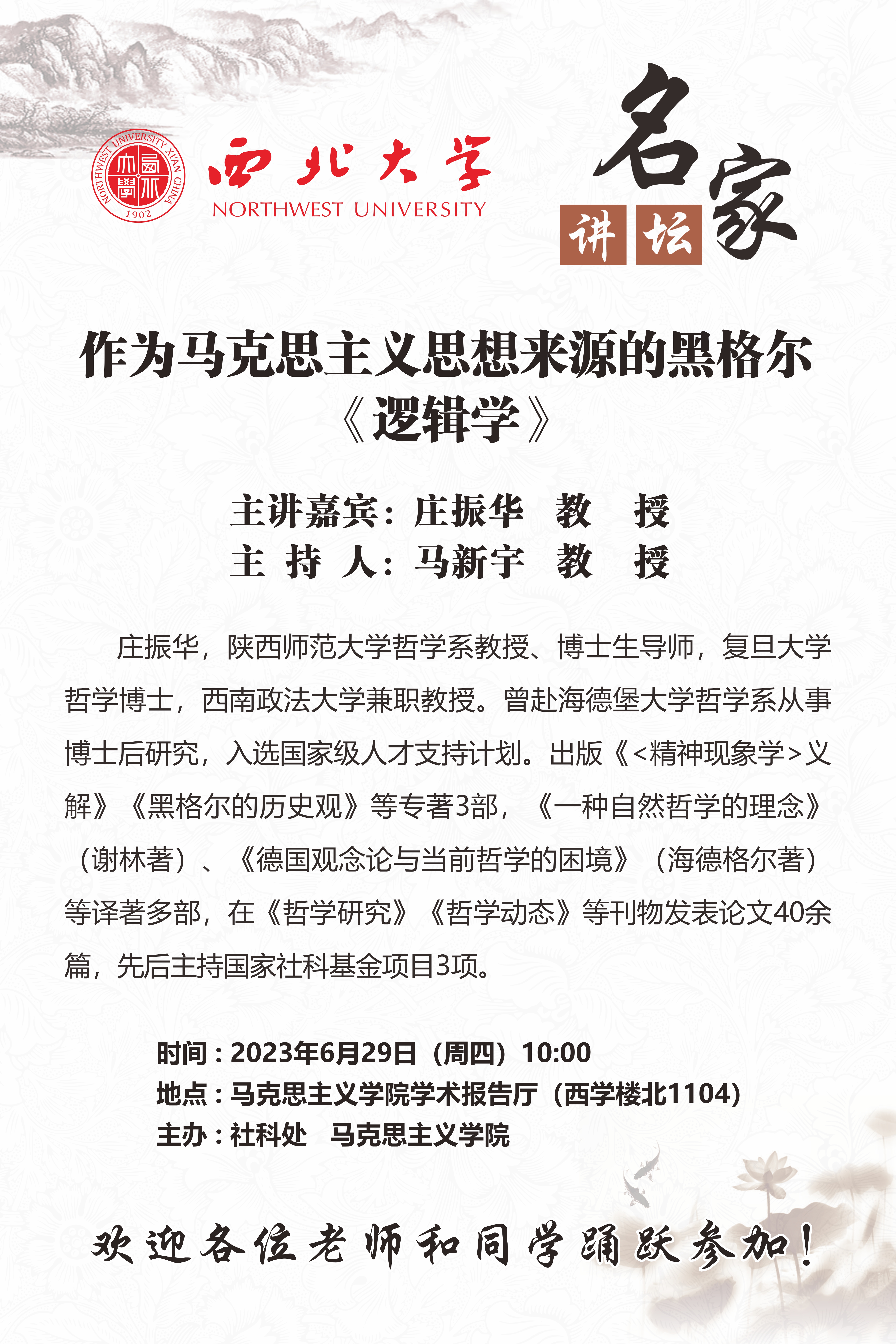 名家讲坛——作为马克思主义思想来源的黑格尔《逻辑学》