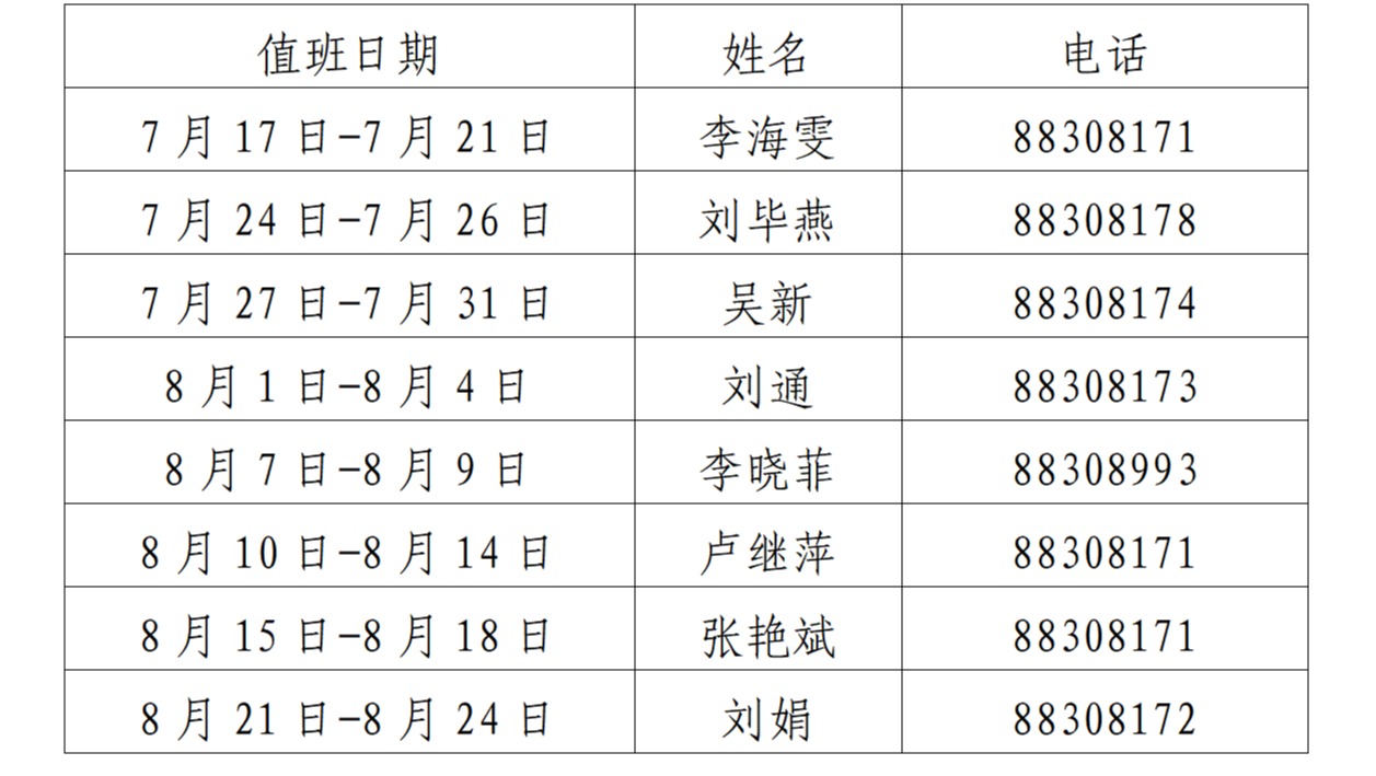 1.值班时间为上午9:00至11:30,下午2:30至5:00。值班期间,带班领导、值班人员须保持24小时电话畅通。遇到不能处理的事项,须及时联系学院领导或相关工作人员。